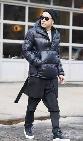 前两天刚说过的高领潮(高领+大衣=高逼格?),由于它本身较好的保暖性能,这时你只需要加入一件外出羽绒服即可。如果你想更具层次,可以卷起裤腿或者直接选择九分裤,露出你那情有独钟的小色袜。